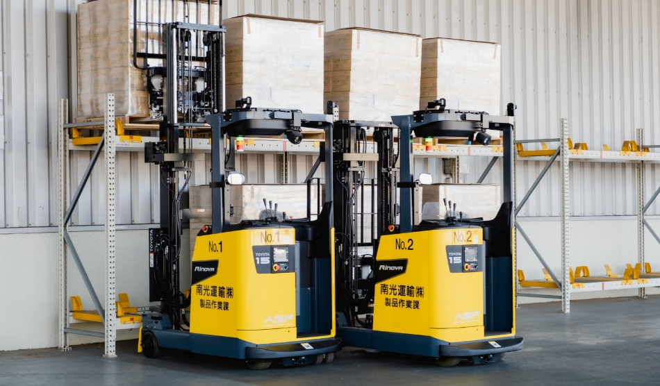無人搬送システム(無人フォークリフト)を導入し、倉庫内への保管作業や出荷準備作業をしています。
